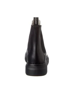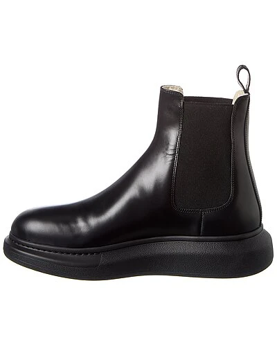 - Leather Boot in black leather with pull-on tab and sherpa lining
