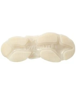 - Triple S Sneaker in white mesh and faux leather with logo accents, patterned laces and transparent sole