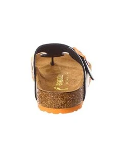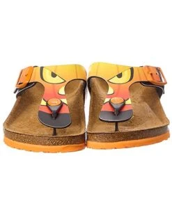 - Gizeh Birko-Flor Sandal in Halloween pumpkin Birko-Flor and orange hardware with buckle accent