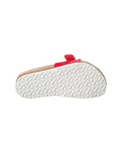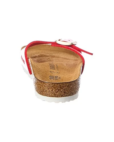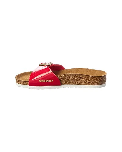 - Madrid Birko-Flor Sandal in red patent Birko-Flor and gold-tone hardware with buckle accent