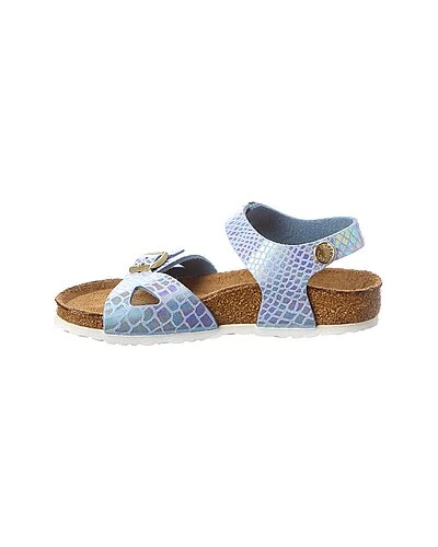 - Rio Birko-Flor Sandal in sky shiny snake Birko-Flor and gold-tone hardware with buckle accents