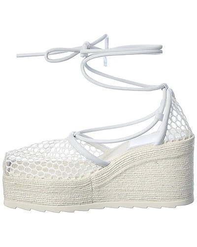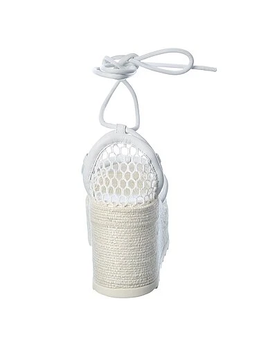 - Stretch Mesh & Leather Wedge Sandal in white mesh and leather