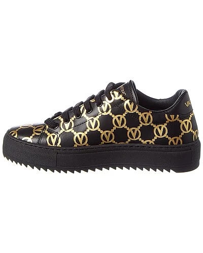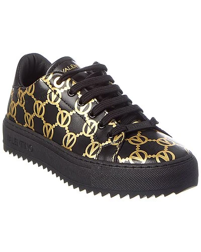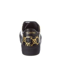 - Beatrice Leather Sneaker in black leather and gold-tone hardware with monogram print
