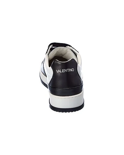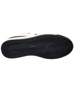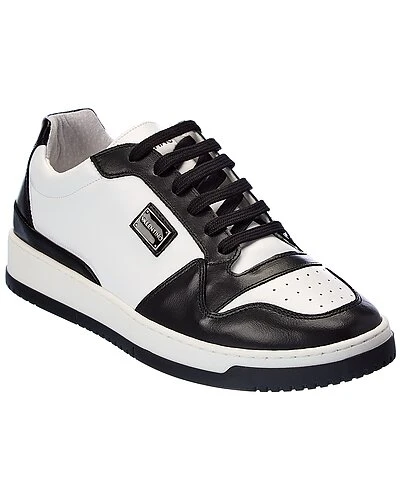 - Oliver Leather Sneaker in white and black leather and silver-tone hardware with perforated detailing and logo plaque