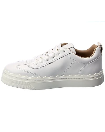 - Lauren Scalloped Leather Sneaker in white leather with scalloped trim