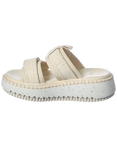 - Lilli Suede & Leather Platform Sandal in white suede, leather and neoprene with contrast stitching and zigzag sole