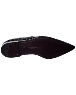 - Croc-Embossed Patent Oxford in black patent croc-embossed leather with pointy-toe