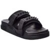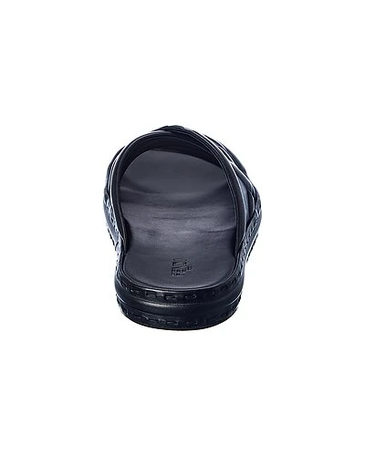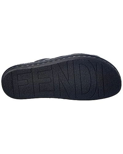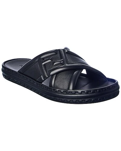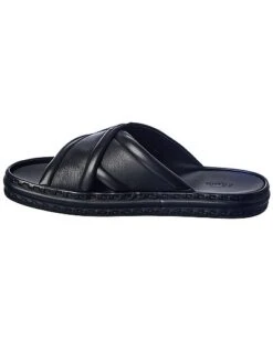 - Logo Leather Platform Sandal in black leather with crossover logo straps