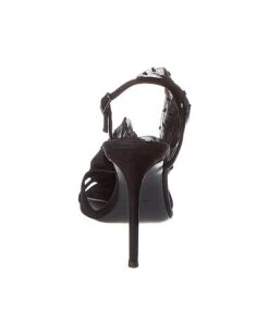 - 105 Suede Sandal in black suede and silk and silver-tone hardware with rose detail