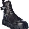 - Brandon Nylon & Leather Boot in black padded nylon and leather with chenille laces and pull-on tab
