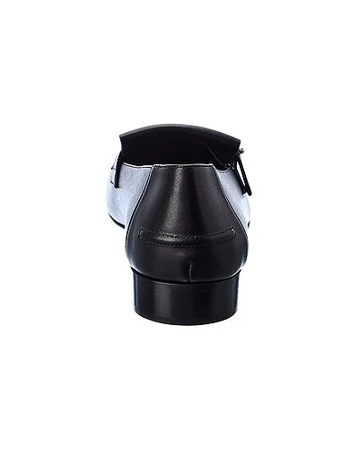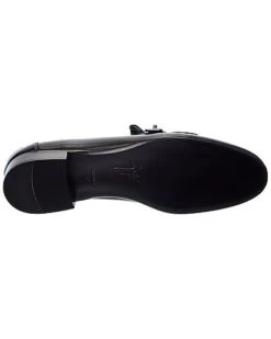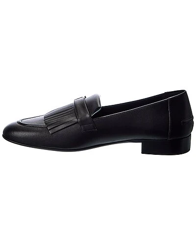 - Cut Leather Loafer in black leather and silver-tone hardware with fringe accent