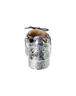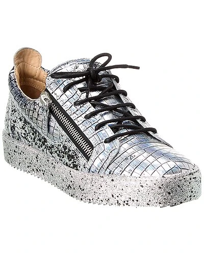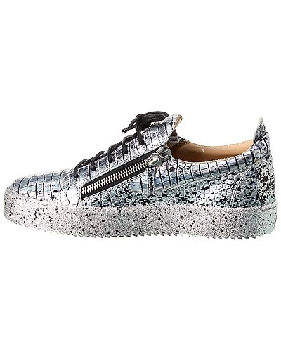 - May London Croc-Embossed Leather Sneaker in gold and black croc-embossed leather and gold-tone hardware with zipper accents