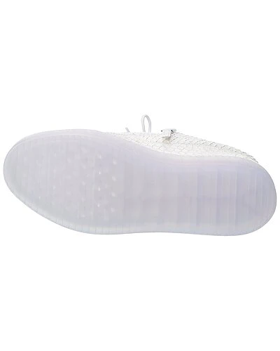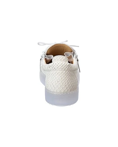 - May London Croc-Embossed Leather Sneaker in white croc-embossed leather and silver-tone hardware with logo detail and zipper accents