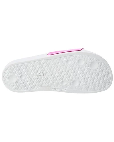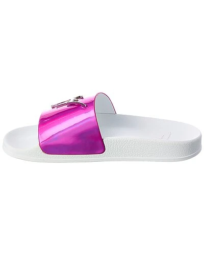- Newlaburela Rubber Slide in pink holographic rubber and silver-tone hardware with logo accent