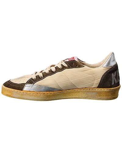 - Ballstar Nylon & Suede Sneaker in white and green nylon and suede with distressed design