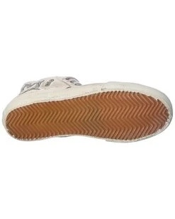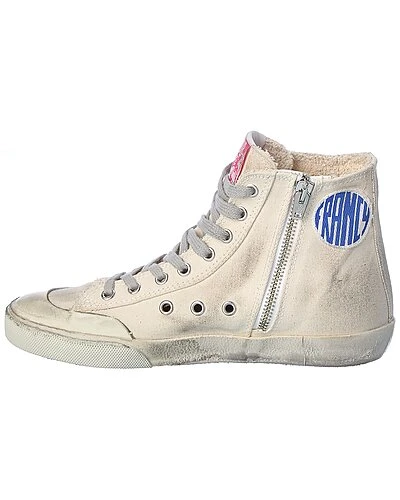 - Francy Penstar Canvas High-Top Sneaker in white canvas and silver-tone hardware with distressed design, glitter detailing and inner side zipper