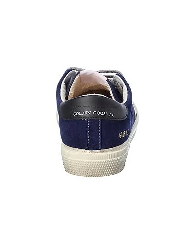 - May Suede Sneaker in navy suede with distressed design and printed laces