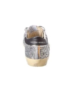 - Superstar Glitter & Leather Sneaker in silver glitter and black and pink leather and silver-tone hardware with distressed design and printed laces