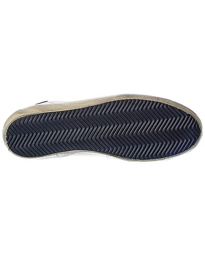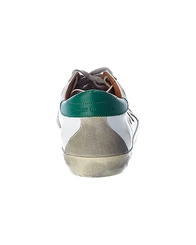 - Superstar Leather Sneaker in white and green leather and silver-tone hardware with distressed design