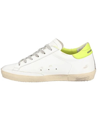 - Superstar Leather Sneaker in white and lime leather with suede star
