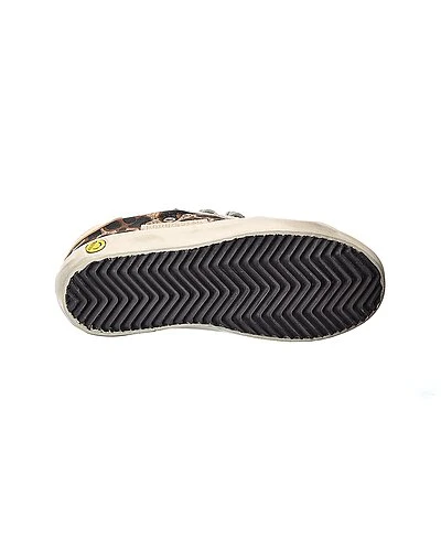 - Superstar Leather & Suede-Trim Sneaker in white leather and suede and brown jacquard textile