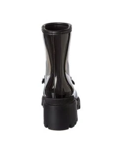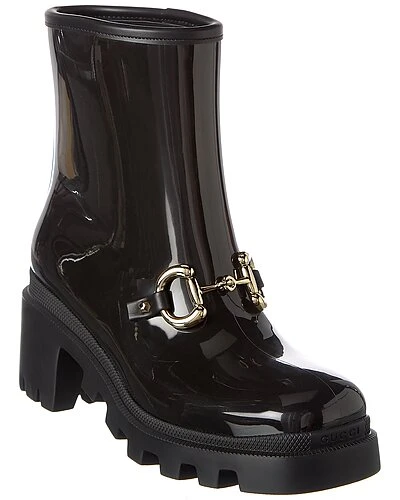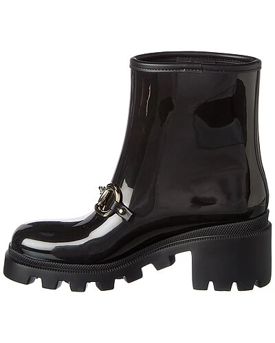 - Horsebit Rubber Bootie in black rubber and light fine gold hardware with horsebit detail