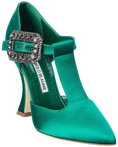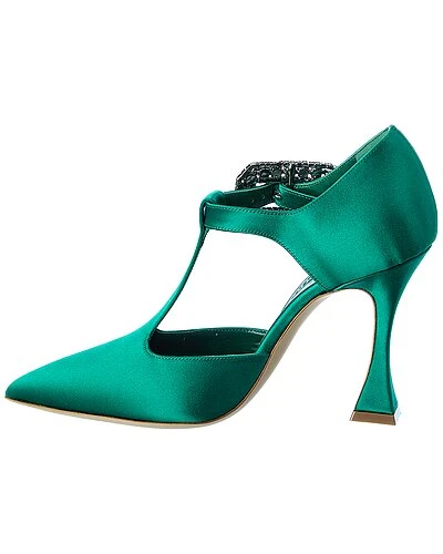 - Martura 105 Satin Pump in green satin and silver-tone hardware with crystal-embellished buckle