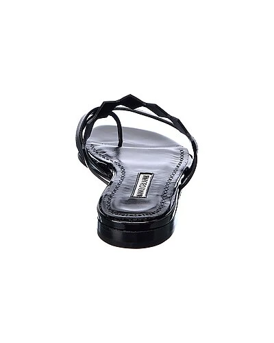 - Sulafa Leather Sandal in black leather with zigzag vinyl strap