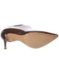 - Patent Bootie in umber patent leather and gold-tone hardware with pointy-toe