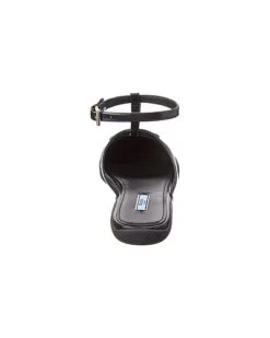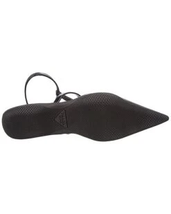 - Leather Pointy-Toe Ballet Flat in black leather and steel finish hardware with strappy design, logo accent and pointy-toe
