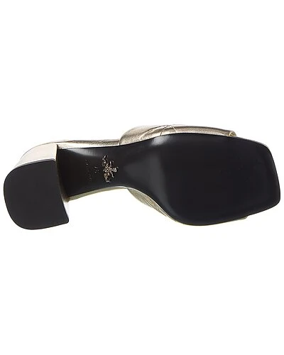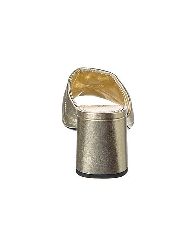 - Logo Padded Leather Sandal in gold padded leather with metal logo lettering
