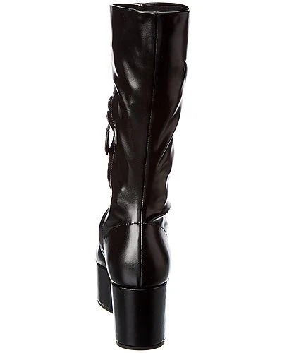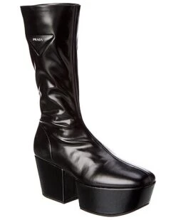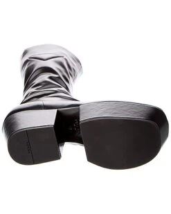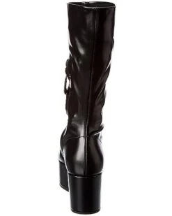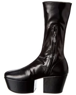 - Tech Leather Platform Boot in black leather and steel finish hardware with embossed logo accent