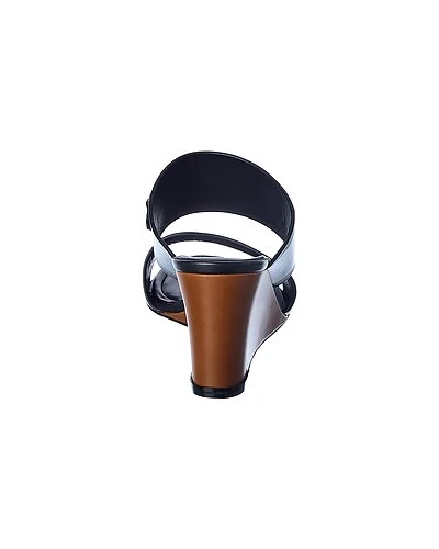 - Chaim Leather Wedge Sandal in black and brown leather and gold-tone hardware with Gancini details