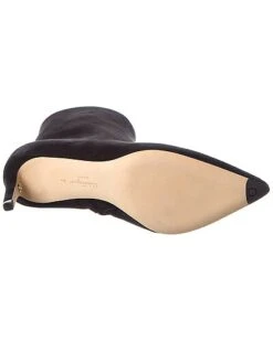 - Imogen Suede Bootie in black suede and silver-tone hardware with pointy-toe