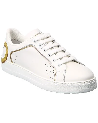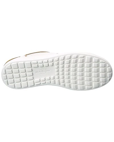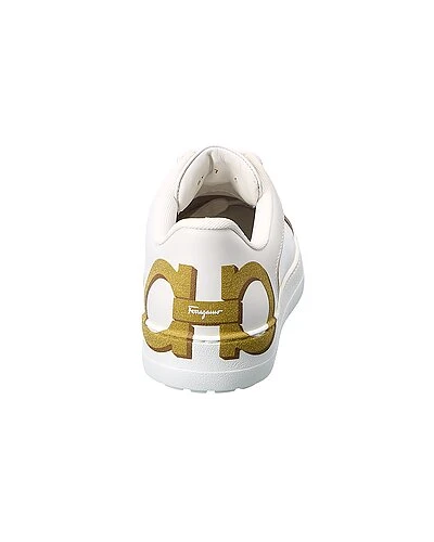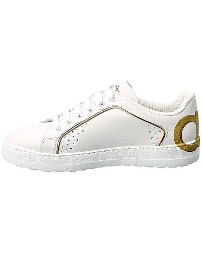 - Manhattan Leather Sneaker in white leather with shimmering applique graphic at heel