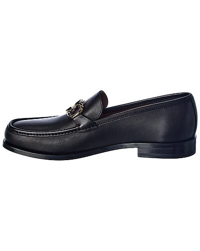 - Rolo Leather Loafer in black leather and gold-tone hardware with gancini detail