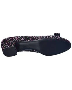- Vara Suede Pump in black suede and silver-tone hardware with multicolor splatter design and suede Vara bow accent
