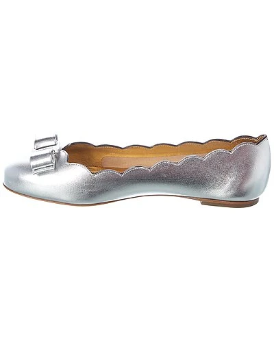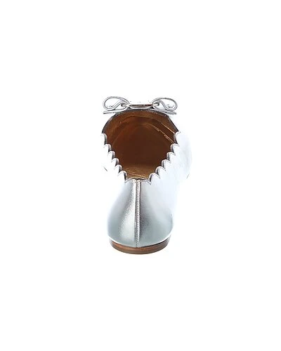 - Varina Leather Flat in silver leather and silver-tone hardware with leather Vara bow accent