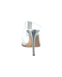 - Sigma Leather & Vinyl Sandal in silver leather and transparent vinyl with crystal embellishments and pointy-peep toe