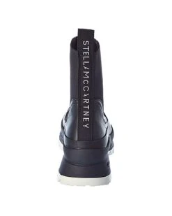 - Trace Chelsea Boot in black vegan-friendly faux leather with logo taping down back