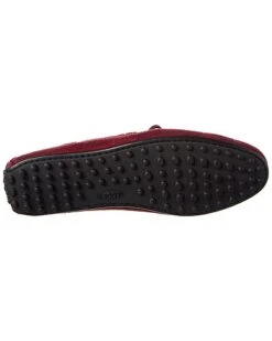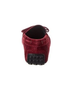 - City Gommino Suede Loafer in red suede and silver-tone hardware with self-tie detail