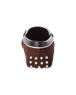 - Gommini Velvet & Suede Loafer in black quilted velvet and leather and brown suede and silver-tone hardware with logo accent