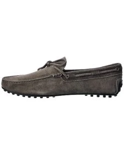 - Gommino Suede Loafer in grey suede and silver-tone hardware with self-tie accent
