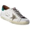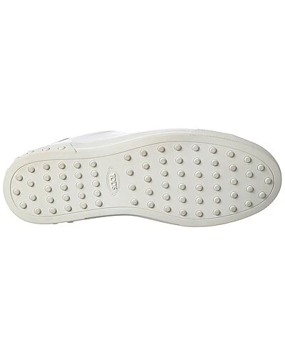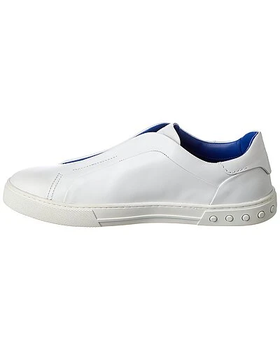 - Leather Slip-On Sneaker in white and blue leather with embossed logo