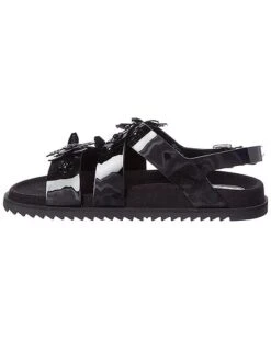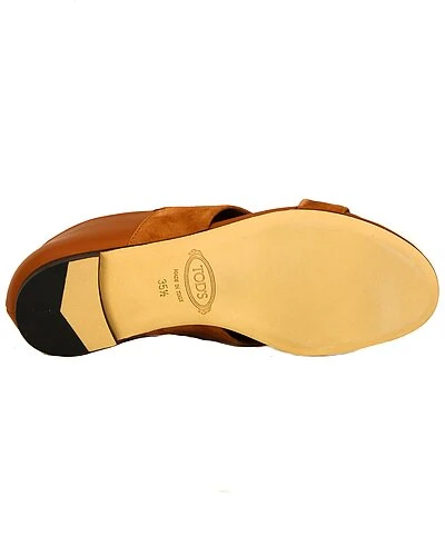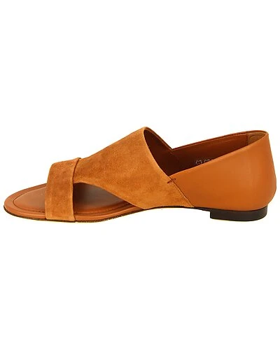 - Suede & Leather Sandal in orange suede and leather with contrast fabric