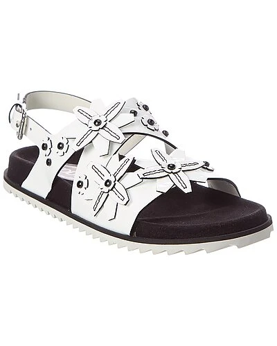- Patent Sandal in white patent leather and silver-tone hardware with floral appliques