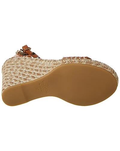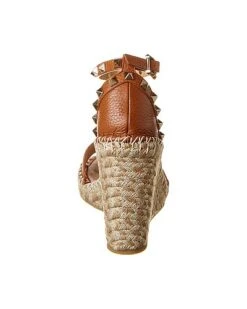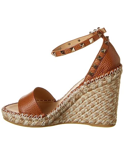 - Rockstud 100 Leather Sandal in tan grainy leather with platinum-finish pyramid stud detailing