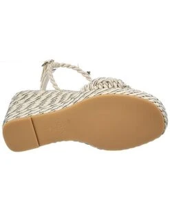 - Rockstud 105 Grainy Leather Wedge Sandal in white silk braid with platinum-finish rockstuds and metallic rope base