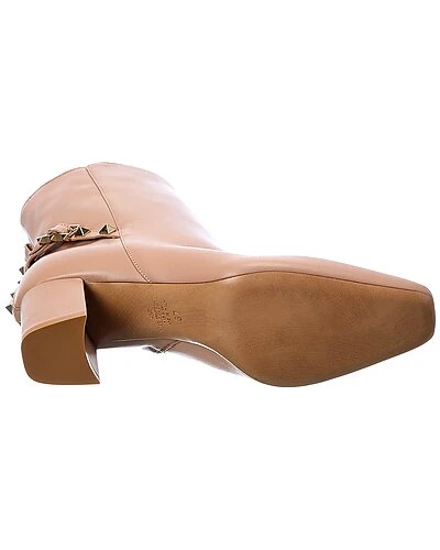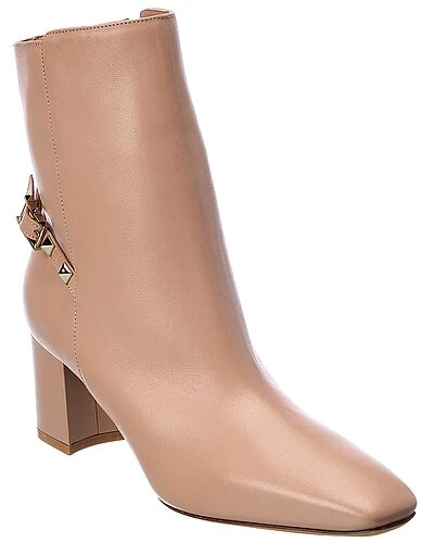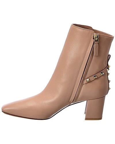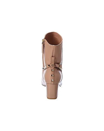 - Rockstud 60 Leather Bootie in nude pink leather with strap accents with platinum-finish rockstuds
