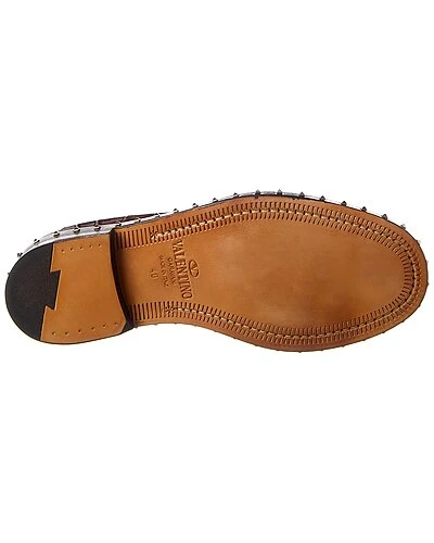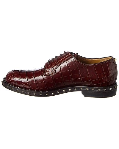 - Rockstud Croc-Embossed Leather Oxford in dark red croc-embossed leather with platinum-finish rockstuds